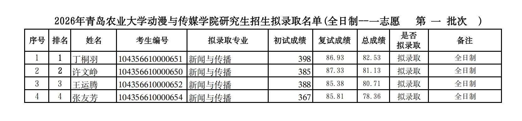 2026年研究生复试新闻与传播拟录取名单