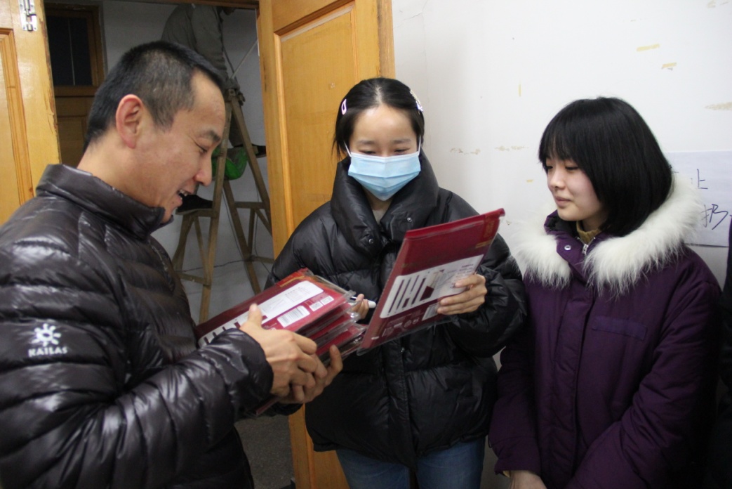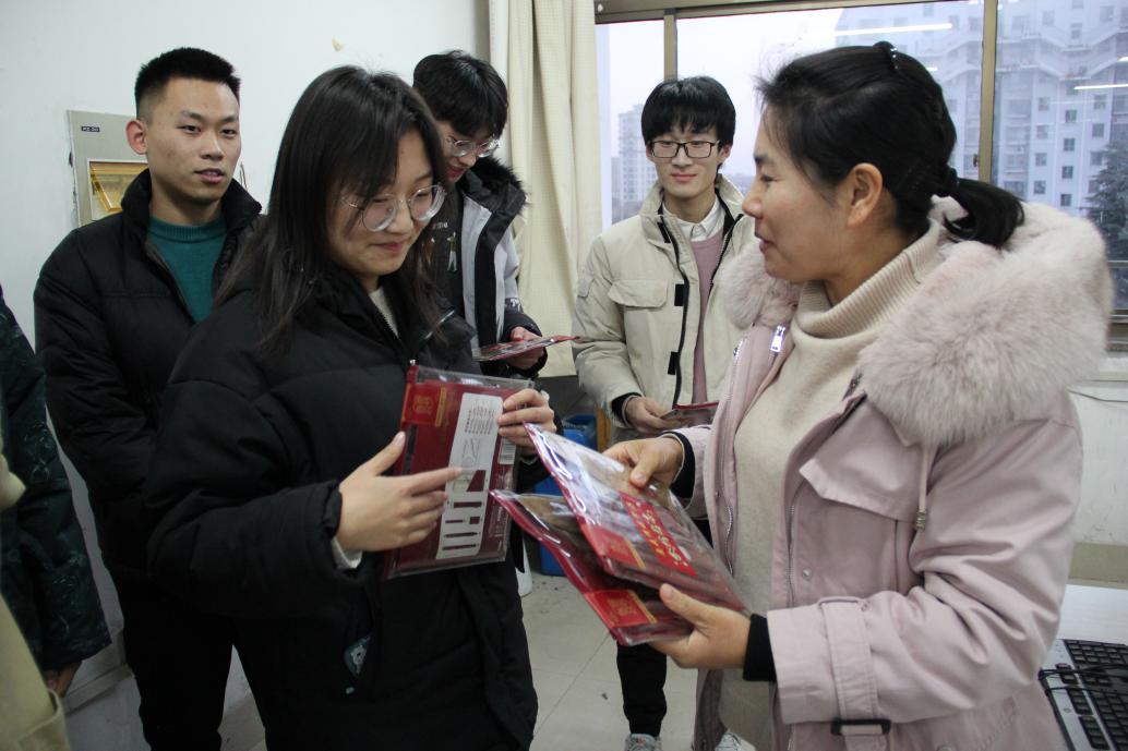 公司领导和学工办老师们将“考研大礼包”发放到每一名考研学子手上。小小的礼包里装满了公司老师对考研学子的满满关怀。在收到“大礼包”后,同学们纷纷表示“马上就要考试了,压力很大,收到这样一份礼物,很感动,能感觉到暖暖的爱意,自己会迎难而上,努力实现自己的梦想,用优异的成绩回报公司、公司培养。”