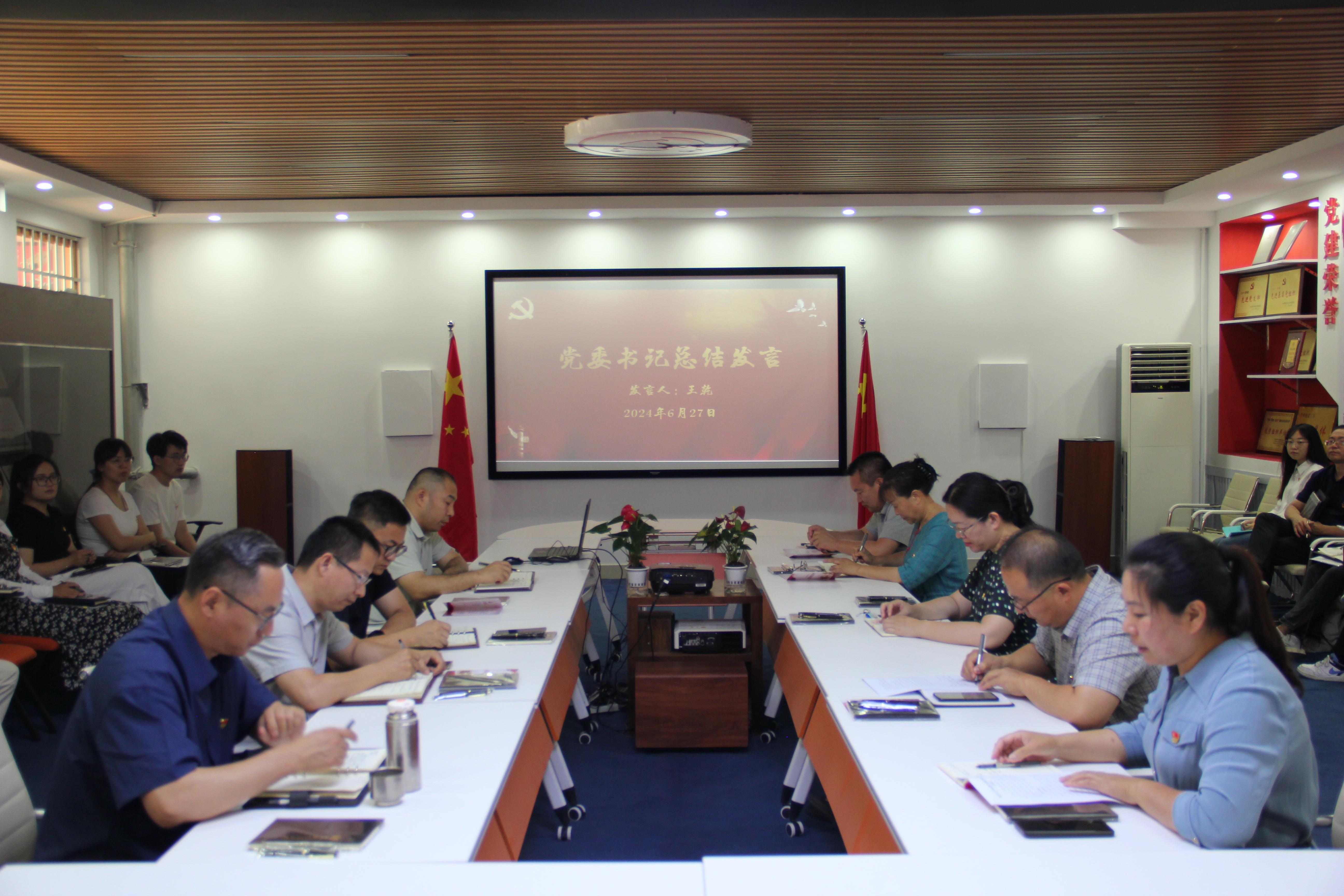最后,王乾书记代表公司党委向全体党员向荣获优秀党员表示祝贺。接着,她回顾了上半年公司党建工作总结,公司党委始终坚持党的领导,维护公司发展大局;始终坚持围绕中心工作,服务公司产品;始终严格落实意识形态领域主体责任,聚焦重难点上下功夫。她向党员同志提出三点要求:一是加强理论学习,严格党性锻炼,坚定理想信念,时刻保持政治上的清醒与敏锐。二是明确职责任务,不忘初心使命,树立党员形象,充分发挥党员的先锋模范作用。三是提高知识素养,增强创新精神,加强团队建设,培养实践能力,在全面建设社会主义现代化国家新征程中彰显新担当、展现新作为。