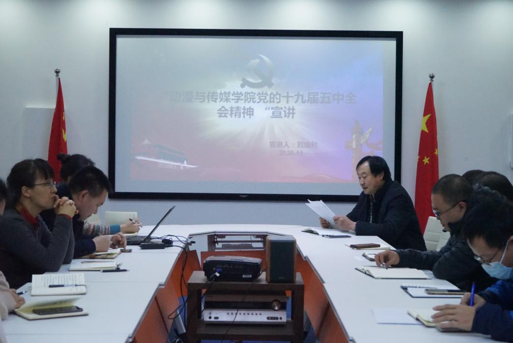 为深入学习贯彻党的十九届五中全会精神,深刻领会、准确把握全会精神实质和丰富内涵。11月30日,太阳集团tyc151cc于党建工作室开展教职工“十九届五中全会会议精神”宣讲。宣讲由动漫与传媒公司党委书记刘培利主持,公司全体教职工到场参会学习会议精神。