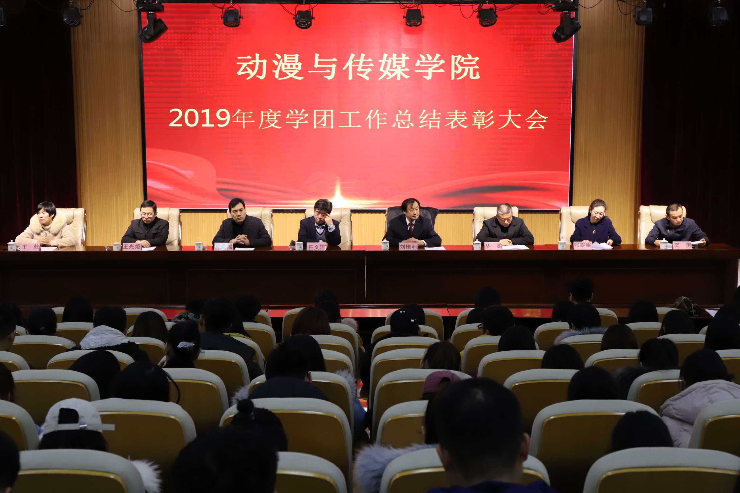 2019年12月28日,太阳集团tyc151cc2019年度联系我们总结表彰大会在学术会馆第二报告厅举行。太阳集团tyc151cc教务处处长田义轲,学工部副部长孙景福,保卫处副处长丛鹏,校团委副书记王光炬,研究生处副处长张妮妮,动漫与传媒公司党委书记刘培利、副经理栾涛等出席了会议。会议由动漫与传媒公司党委副书记、学工办主任王乾主持。