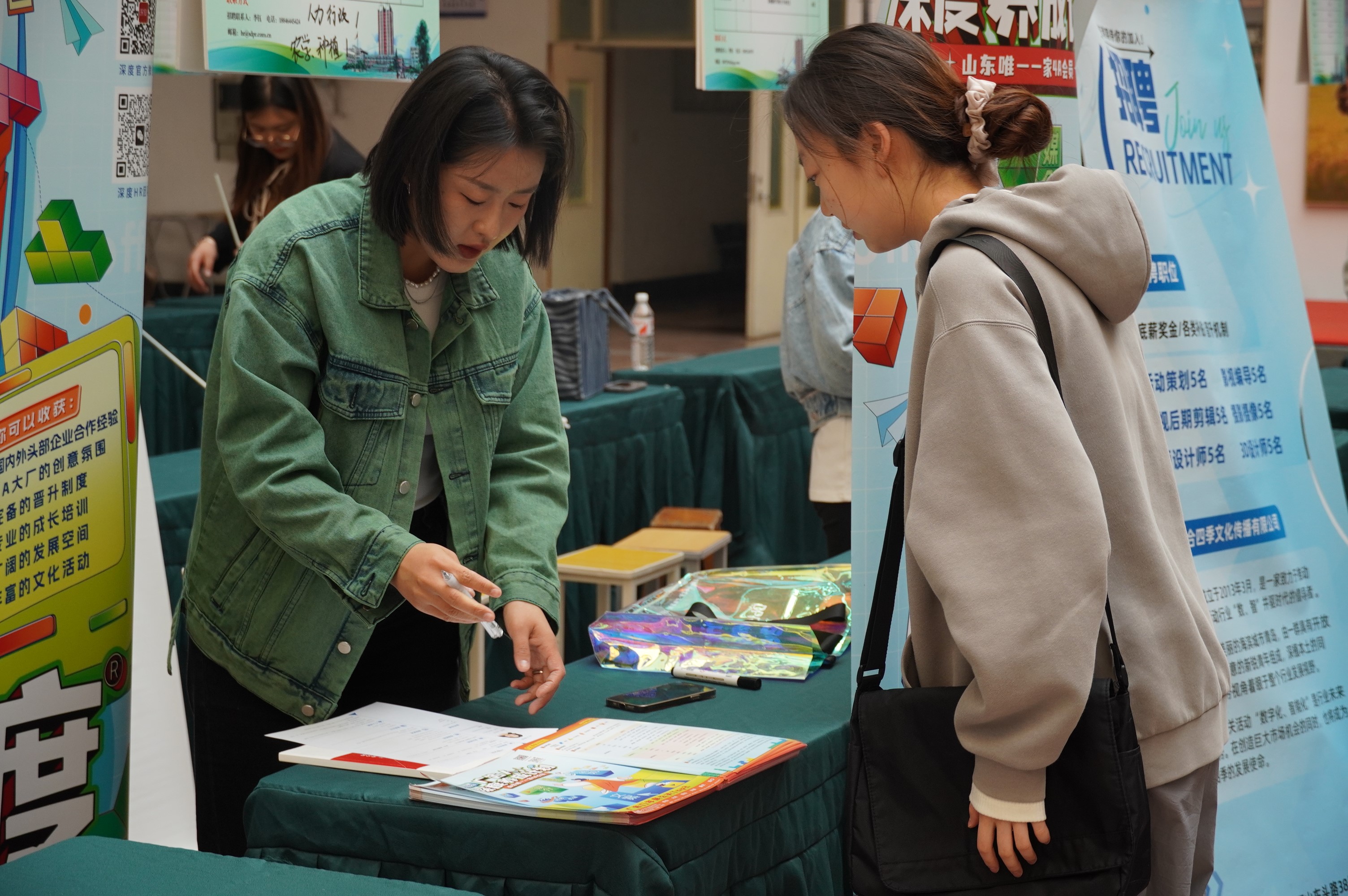 招聘会现场气氛热烈,井然有序。此次招聘会共有54家企业参会,累计提供就业岗位200余个,参会企业涉及太阳集团tyc151cc各个专业领域,会场气氛热烈,同学们携带自己精心制作的求职简历,主动了解招聘需求。各用人单位通过现场宣讲,向同学们介绍人才招聘政策岗位要求、薪资福利、未来发展等情况。各位应届毕业生们也积极了解职场动态和就业市场需求,为未来的职业规划做好准备。