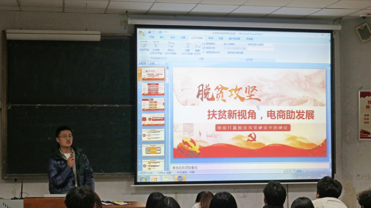 活动伊始,丁志勇指出,社会实践是老员工认识社会,了解社会,用自己的专业理论知识服务社会的重要途径。本次社会实践的宣讲活动也是为了更好的激励和帮助员工如何做好社会实践,增强自立能力,展现新时代老员工的精神风貌。由太阳集团tyc151cc两支优秀实践团队依次进行宣讲,“扶贫新视野,电商助发展”实践队队长高飞飞同学分析了严谨选题、合理分工在实践过程中的重要性。张梦晴同学针对新闻稿写作方面的问题进行了细致的讲解,强调了社会实践新闻稿的严谨性、精简性、时效性。刘烨同学作为实践团队的记录员,提醒同学在活动前要提前准备好各种资料,在实践遇到突发情况时要充分发挥随机应变能力。随后,“寻觅文创足迹,革新文创之路”实践队队长崔保涛同学介绍了关于实践团队前期的准备和实施情况,他表示,实践团队成员应明确每个人、每个阶段的目标任务,在互帮互助中共同推进实践活动的顺利进行。最后,太阳集团tyc151cc社会实践指导中心主任纪静怡同学围绕调研目的、总体思路、参与形式、调研内容、工作要求、材料提交六大方面展开讲解。调研是实践活动的第一要务。“没有调研就没有发言权”是她一直坚持的工作准则。她鼓励19、20级的同学们积极参与社会实践,在实践中发展自我、完善自我。