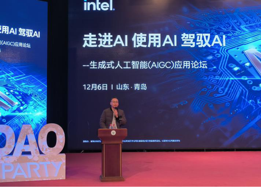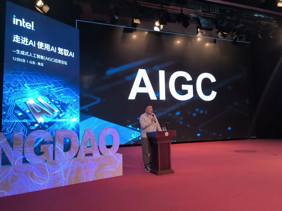 随后,Intel 公司中国区大区总监姬鹏先生发表了主旨演讲。他以《Intel 与AIGC》为主题,深入探讨了Intel公司在生成式人工智能领域的创新与突破。姬鹏先生表示,随着技术的不断发展,生成式人工智能的应用范围越来越广泛,将为各行各业带来巨大的变革。