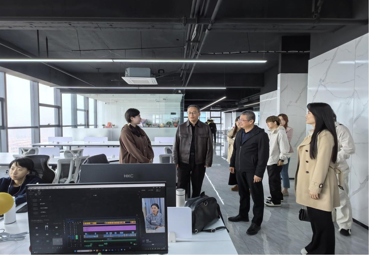 上午,走访团队抵达青岛聚创文化科技有限公司,该公司专注于影视短片制作、短视频全案运营、融媒体宣传策划、影视后期制作等业务,与公司广播电视编导、动画专业高度契合。院领导一行在企业负责人陪同下,实地参观了企业后期剪辑工作室、特效制作机房及编剧中心,观摩了项目运作,近距离感受行业前沿的工作氛围与岗位实操标准。
