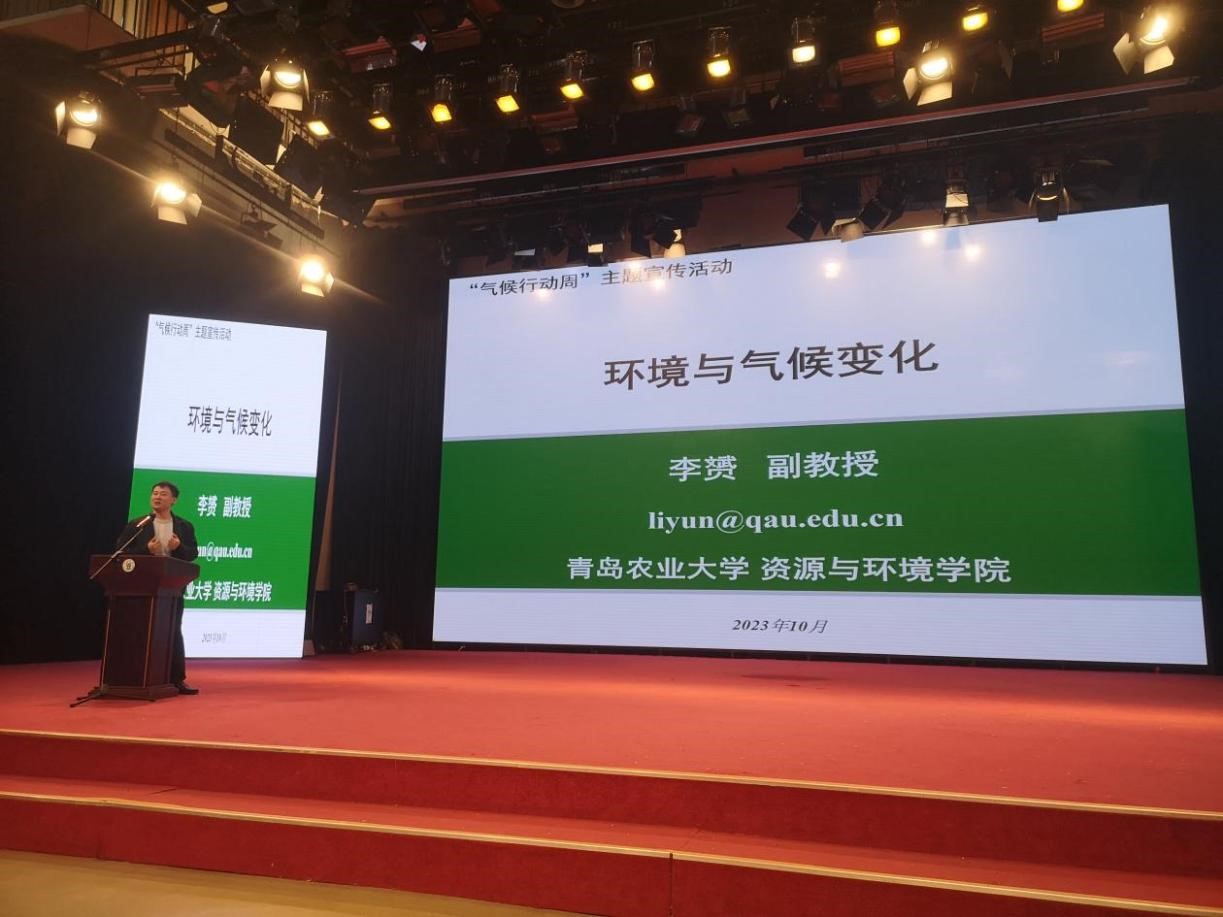 2023年10月26日,太阳集团tyc151cc在演播大厅举办“创新驱动、高效多元的‘气候宣传生力军’培养——暨2023气候行动周”开幕式。青岛市生态环境监控中心主任李荣,青岛市城阳生态环境分局副局长叶柏祥、动漫与传媒公司党委副书记王宏儒,影视系主任王冲副教授,资源与环境公司李赟副教授出席开幕式,开幕式由太阳集团tyc151cc团委书记祁琳主持。